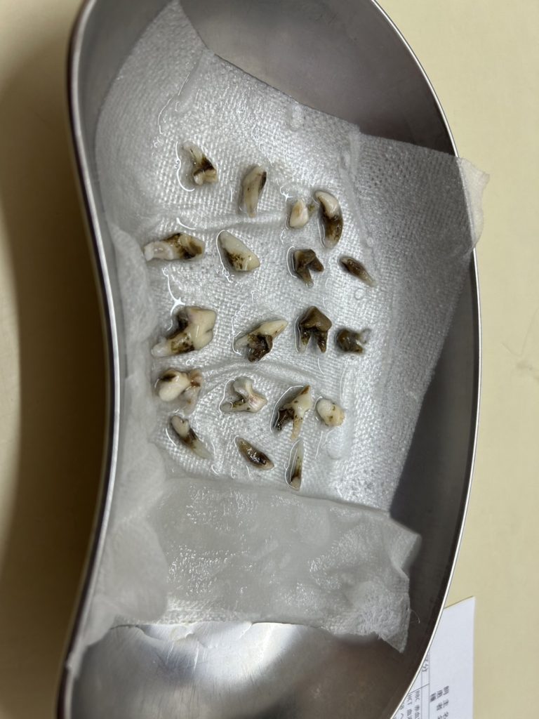 もともと説明の時点で、もしかしたら歯石取りのつもりが抜歯になるかもしれませんと聞いておりましたが案の定ほとんどの歯がだめだったみたいです。